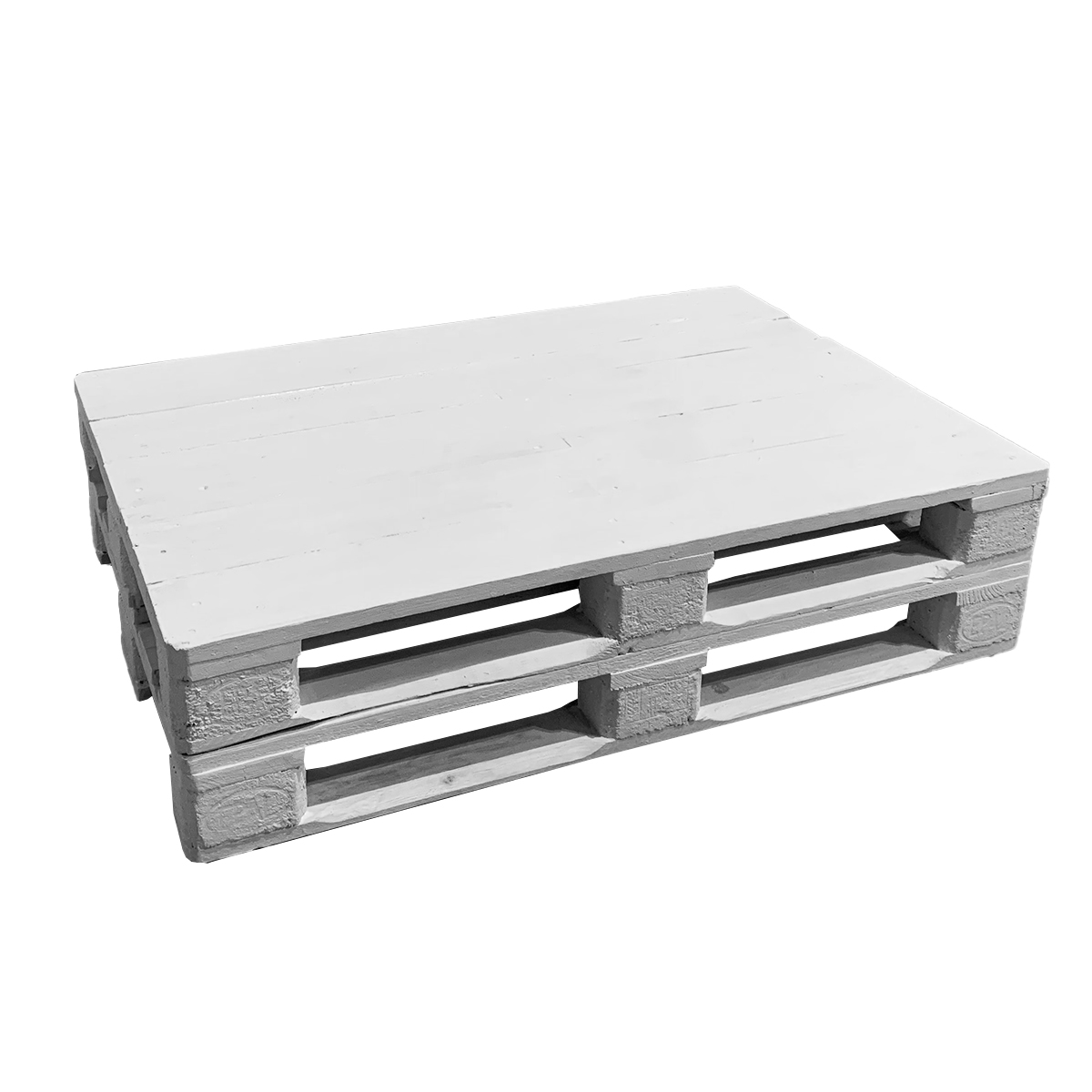 Стол из белых паллет отлично вписывается в различный интерьер и даст возможность организовать зону отдыха. Также можно использовать на уличных мероприятиях.